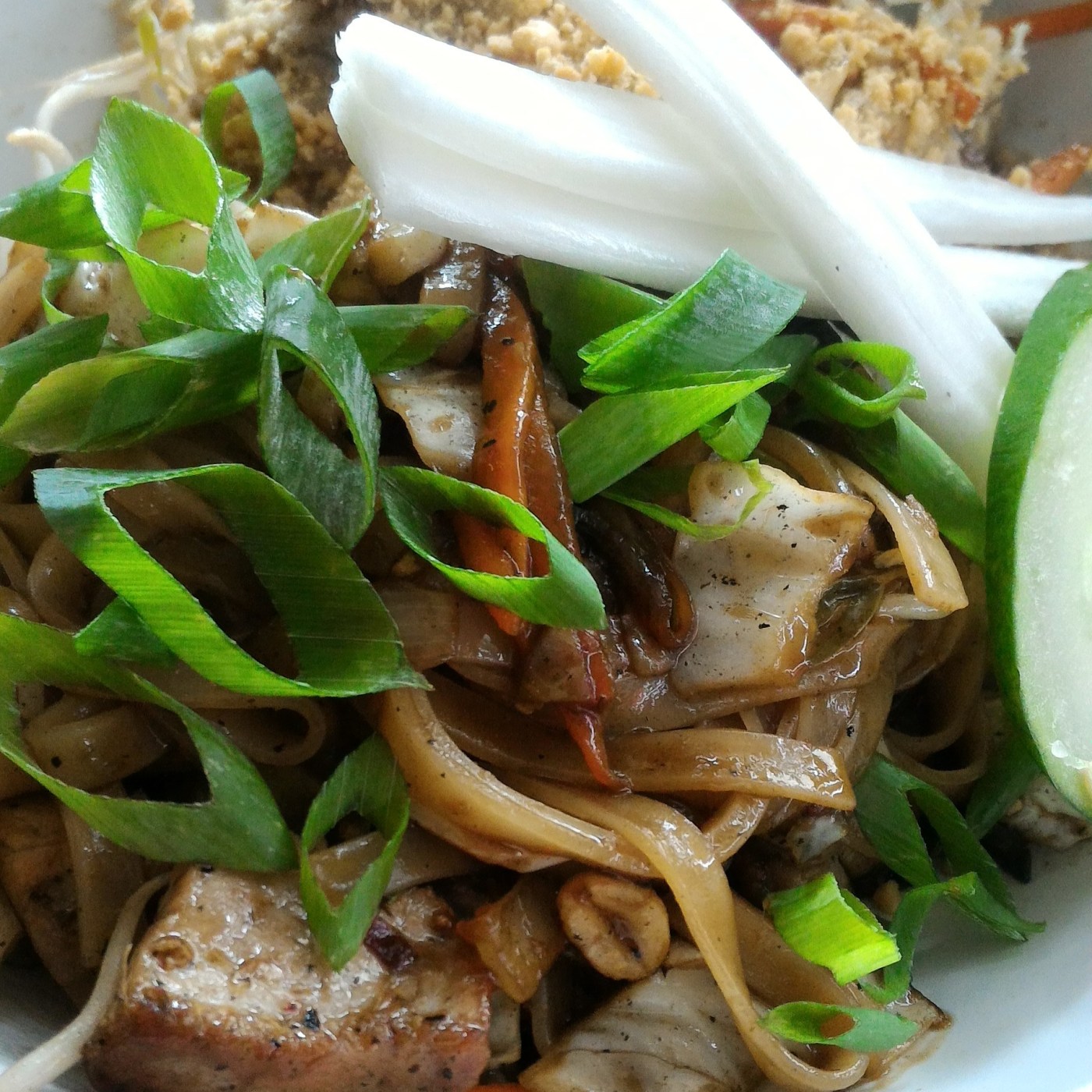 Desci no TIRIO e peguei outro ônibus que voltava. Eles serviam comida tailandesa. Comi um pad thai com pimenta nível 2 e um suco de melancia com laranja. Como sobremesa, um sorvete de chocolate sem lactose e um de manga com gengibre. Depois, um macchiato 🙂 Fiquei lá um tempão com o meu kindle, um dos meus programas favoritos.