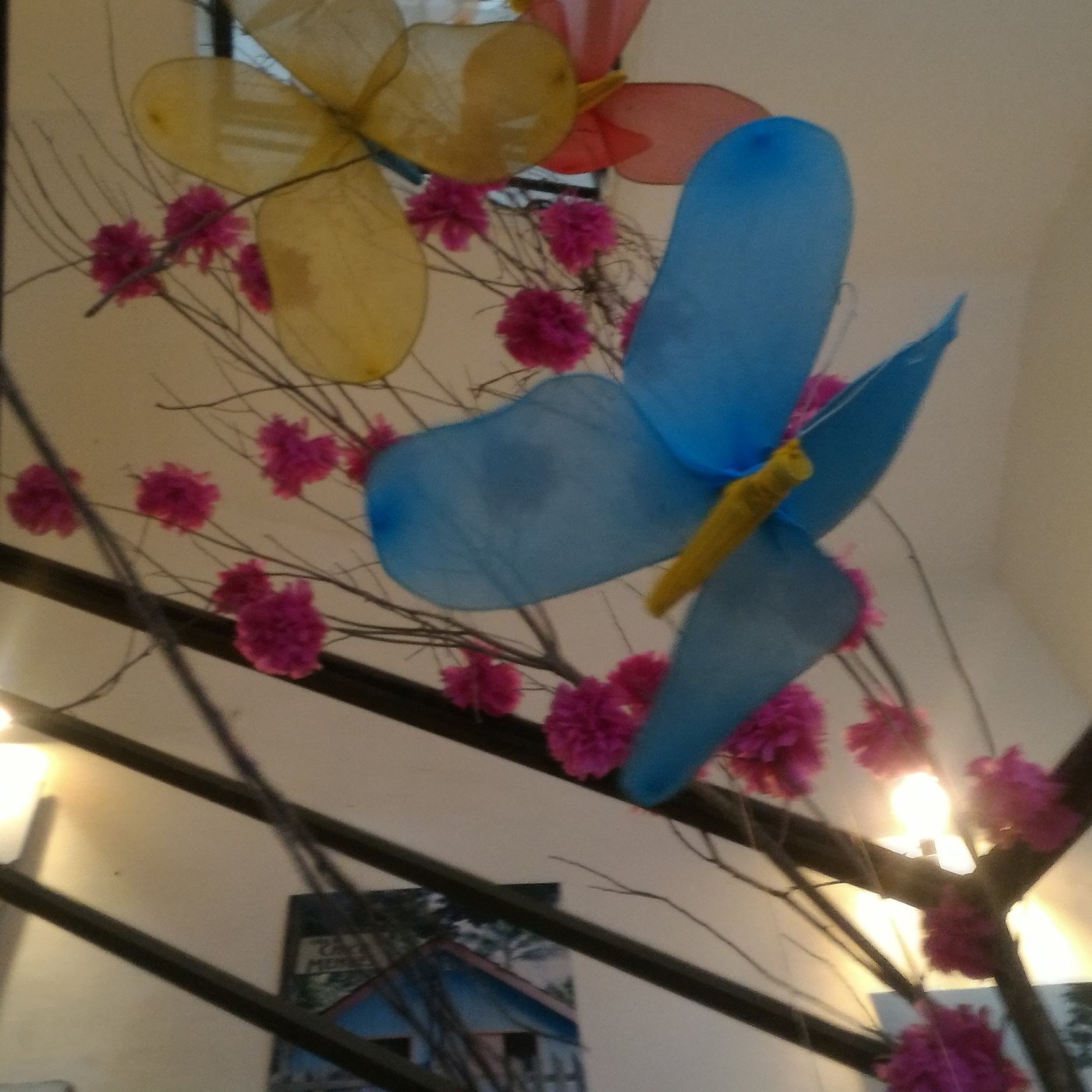 Daí fomos para a escola da Vânia para as meninas conhecerem e para ela deixar umas coisas lá. Então, fomos almoçar num restaurante chamado Pão de Queijo (que descobri que pertence aos pais do menino do Acre, aquele que desapareceu deixando mensagens criptografadas e lançaram o livro, lembram? Daí, quando o livro foi lançado, ele reapareceu…).
