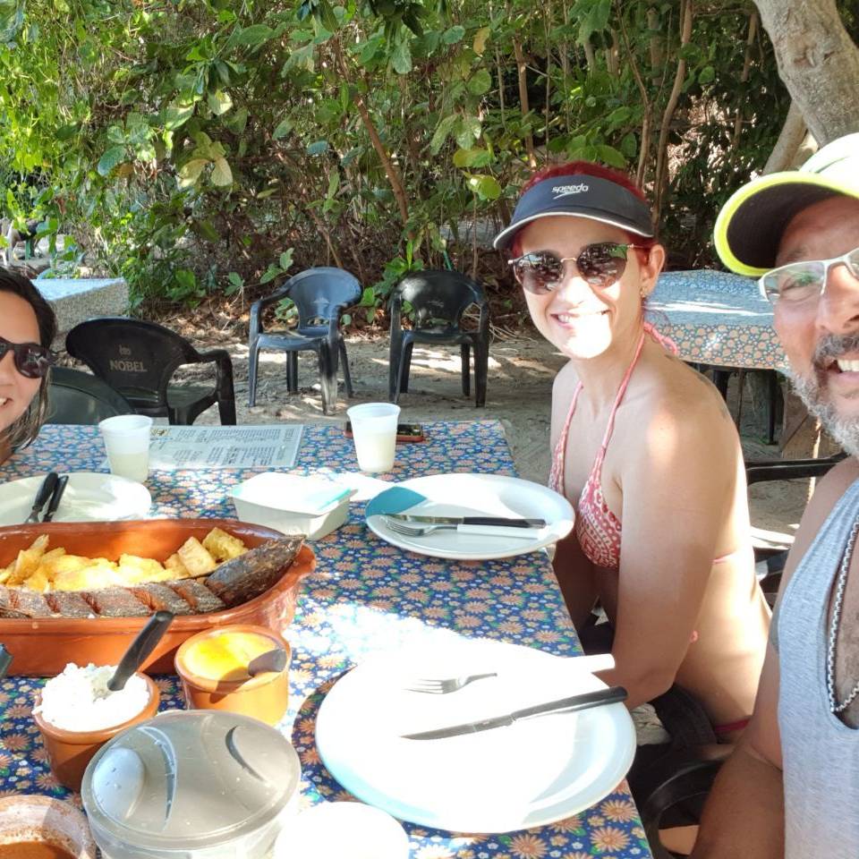 Fomos a Tabatinga, onde tem um Maceió, que é um rio que se encontra com o mar, daí a água é calma, tipo uma piscina. No caminho, provei pitomba, uma fruta daqui. Parece uma lichia, mas você fica chupando em vez de comer e tem menos “polpa”. É bom.
