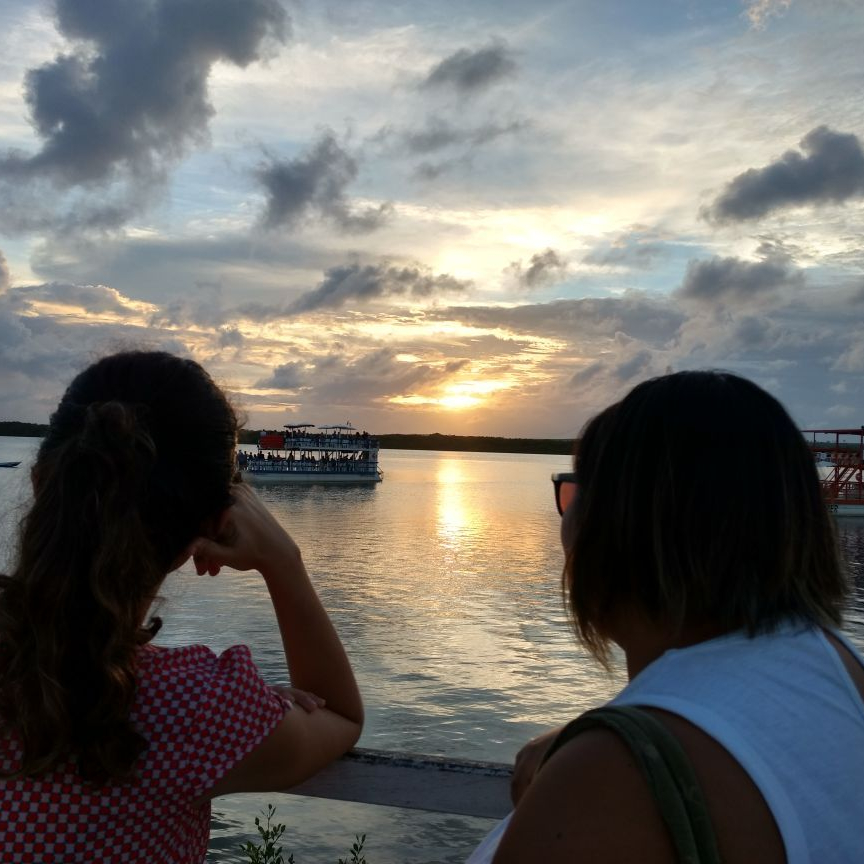 Lá pelas 16h30, fomos ao Jacaré, que é um lugar na orla do Rio Paraíba, com lojinhas, onde tem o famoso por do sol. Além da vista, tem o Jurandir do Sax, que é um cara que toca sax em um barquinho no rio durante o por do sol. É bem bonito, pena que estava nublado e só deu para ver um pouco do por do sol por entre as nuvens. Também tinha um cara tocando violino e era bem bonito. A apresentação termina às 18h com o Jurandir tocando Ave Maria.