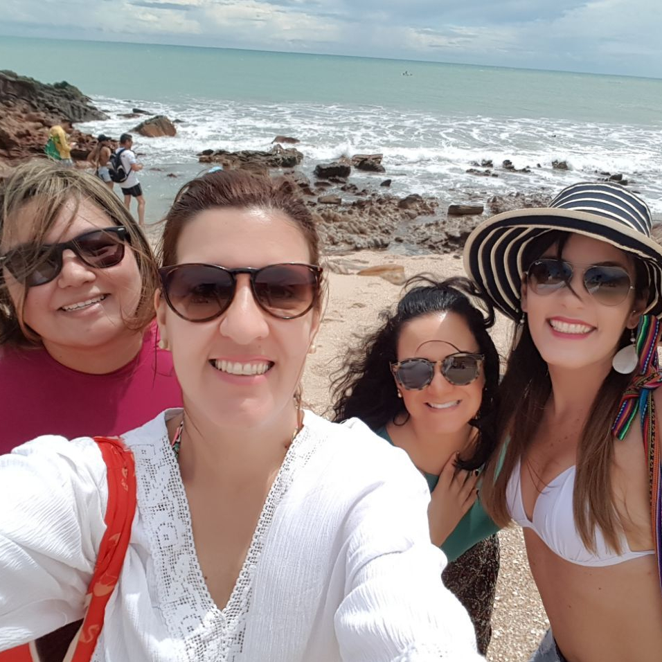 Hoje foi um daqueles dias perfeitos. Acordei cedo para fazer o passeio do lado leste dessa vez. Estava sol então consegui ir de buggy. Fui com outras três meninas e ficamos muito amigas. Era uma de Salvador e duas de São Paulo. A primeira parada foi a pedra furada, um dos cartões postais de Jeri. Na verdade, o buggy para na praia e você precisa ir caminhando. Dá mais ou menos 25 a 30 minutos, que é quase metade do tempo que levaria indo da vila, então compensa parar lá no caminho do passeio. É uma caminhada tranquila de se fazer. Na pedra, tem fila para tirar foto, portanto, é bom andar mais rápido para chegar antes da galera.