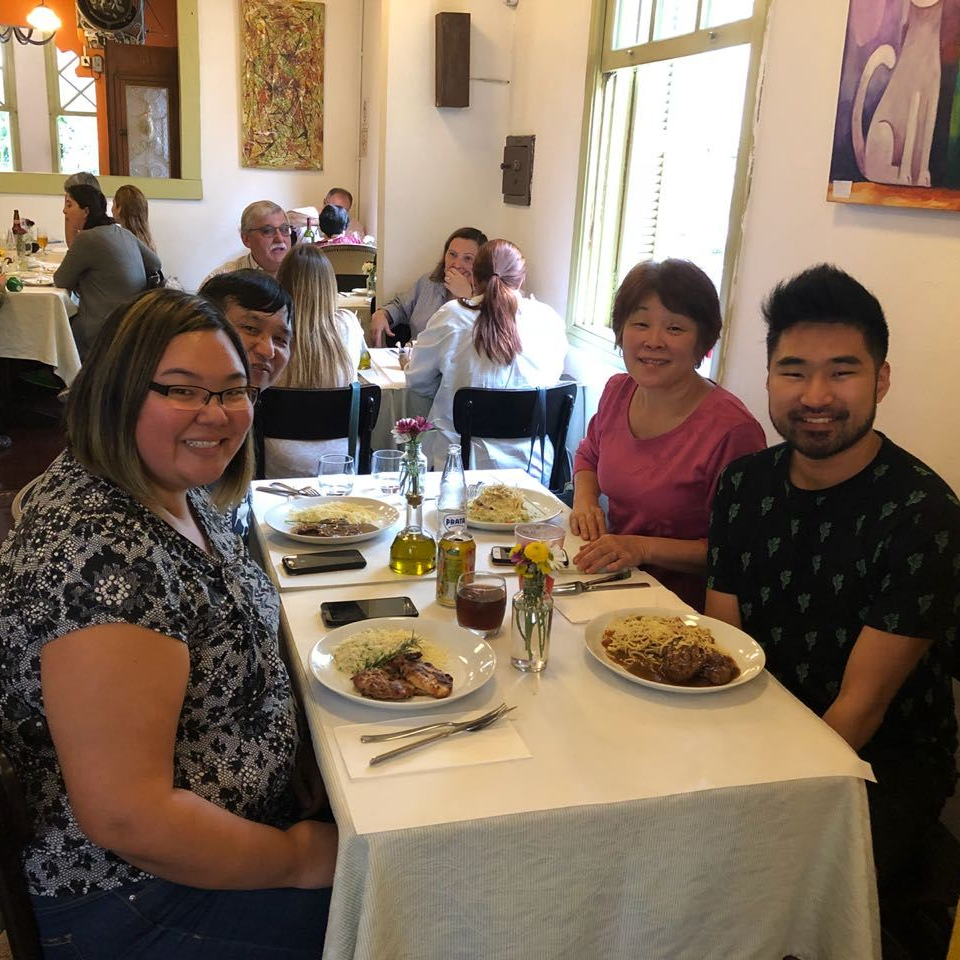 Hoje foi aniversário do meu irmão, então, fomos almoçar todos juntos. Acordei e fiz a mala, daí meus pais passaram para me buscar e fomos para o apê do meu irmão. Fomos almoçar num restaurante lá perto chamado Zeffiro. É de comida italiana e pegamos o menu executivo que vem com entrada, prato principal e sobremesa. É bem gostoso.