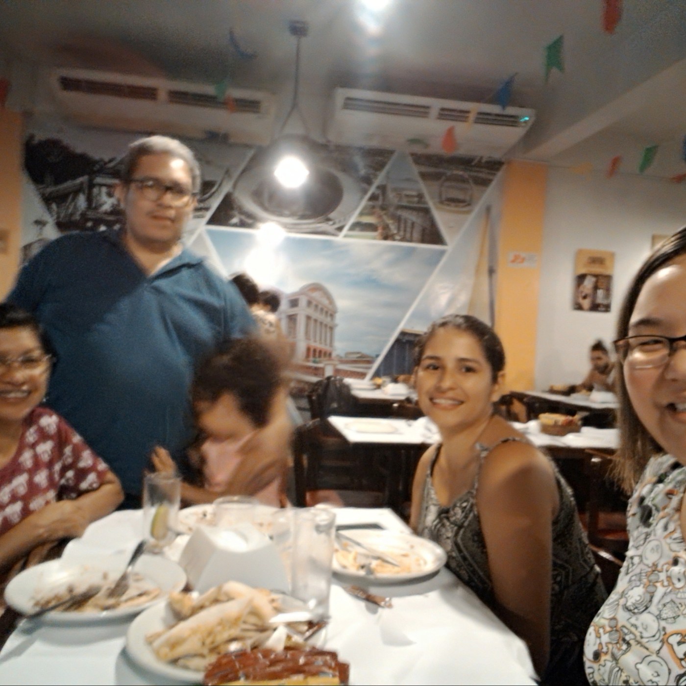 À noite, fomos a um rodízio numa pizzaria chamada Mr. Pizzo. Era boa e tinha uns sabores diferentes, tipo cachorro-quente. E uns sabores regionais gostosos, tipo tucumã e cupuaçu.