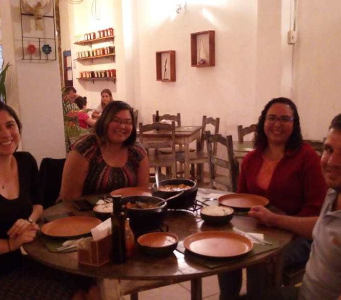 Voltamos para Paraty, tomamos banho e fomos até a rodoviária para ver os horários de ônibus para Trindade. Decidimos ficar um dia a mais para aproveitar a praia. Daí, fomos jantar com o casal que está hospedado na nossa pousada. Fomos ao Candeeiro onde servem peixada com banana, que ouvimos dizer que é bem típico de Paraty. O custo x benefício de lá é bem bom.