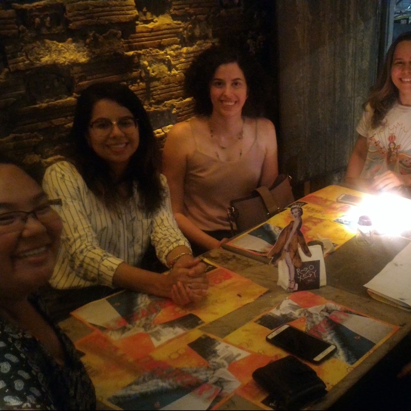 De lá, fomos a um bar porque era aniversário de duas amigas da Renata. Elas são muito animadas e foi divertido passar o restinho da noite conversando, bebendo e comendo com elas.