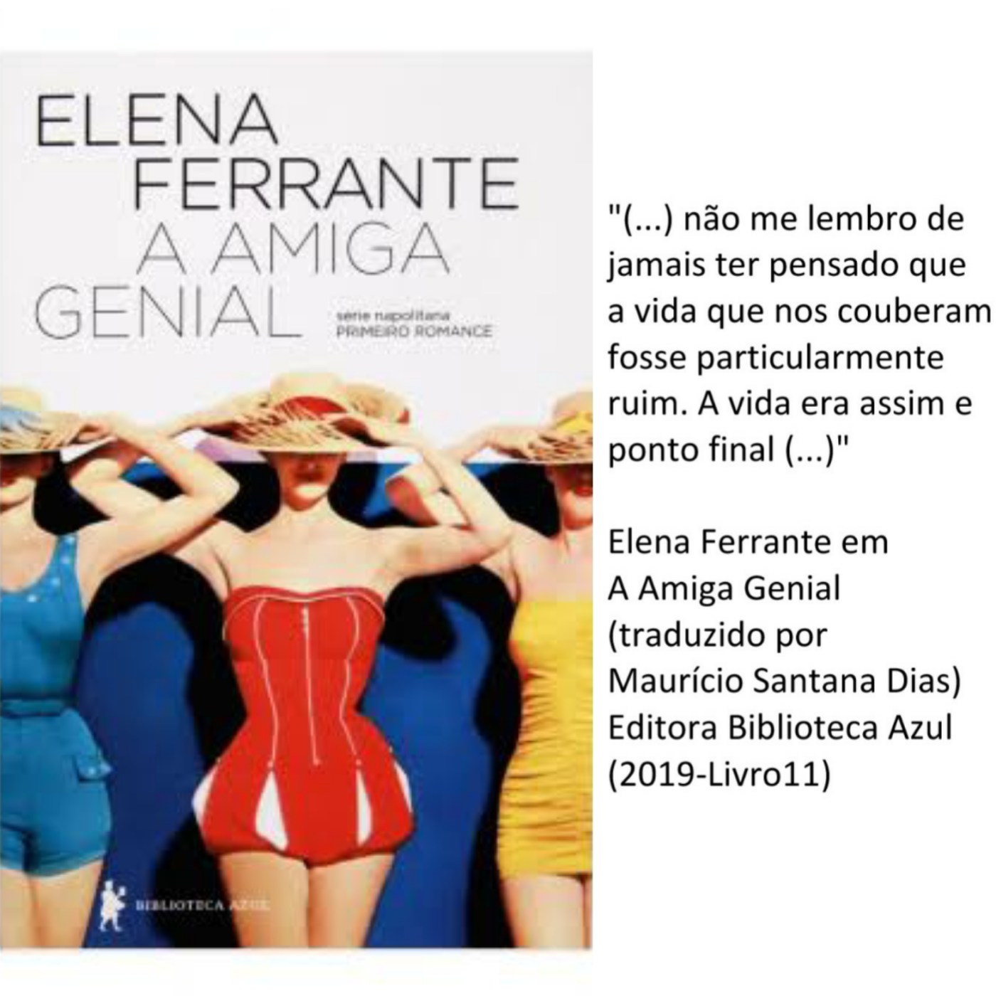 No começo, minha leitura foi lenta porque é uma história do cotidiano das meninas e fala sobre a infância delas em um bairro pobre nos anos 50, numa Itália pós-guerra. Mas a partir da metade do livro, dei uma engrenada e terminei relativamente rápido (considerando que estou num período meio travado de leituras). Na adolescência, começam a haver reviravoltas nas histórias das meninas, a maior delas quando você descobre que a amiga genial não é Lila, a mais inteligente, mas sim Lenu. Há um diálogo entre as duas e Lila lhe diz: Você é minha amiga genial.